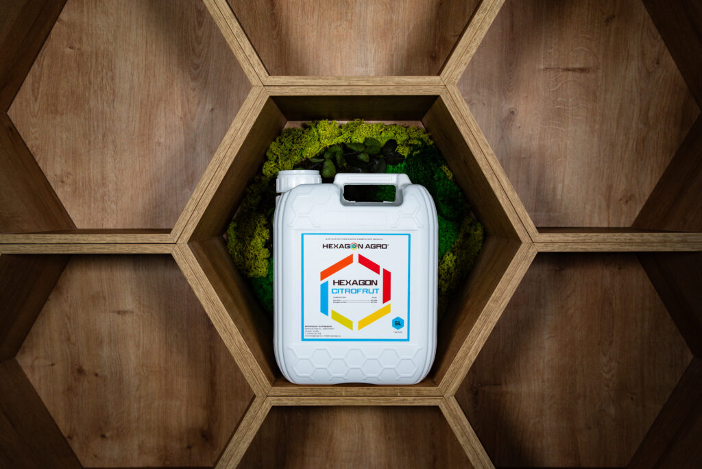 HEXAGON® CITROFRUT es una mezcla líquida de Zinc (Zn) y Manganeso (Mn) complejado por EDTA, formulado para ser aplicado vía foliar principalmente en cítricos y otros cultivos hortícolas, frutales y tropicales.