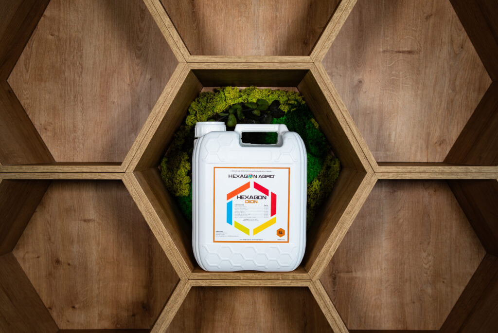 HEXAGON® DION es una solución líquida de origen vegetal, proveniente de extracción y fermentación de melazas azucareras. Es un producto 100% natural elaborado a partir de extractos vegetales. Se usa como una materia orgánica concentrada, acondicionador orgánico de suelos, potenciador de mezclas.